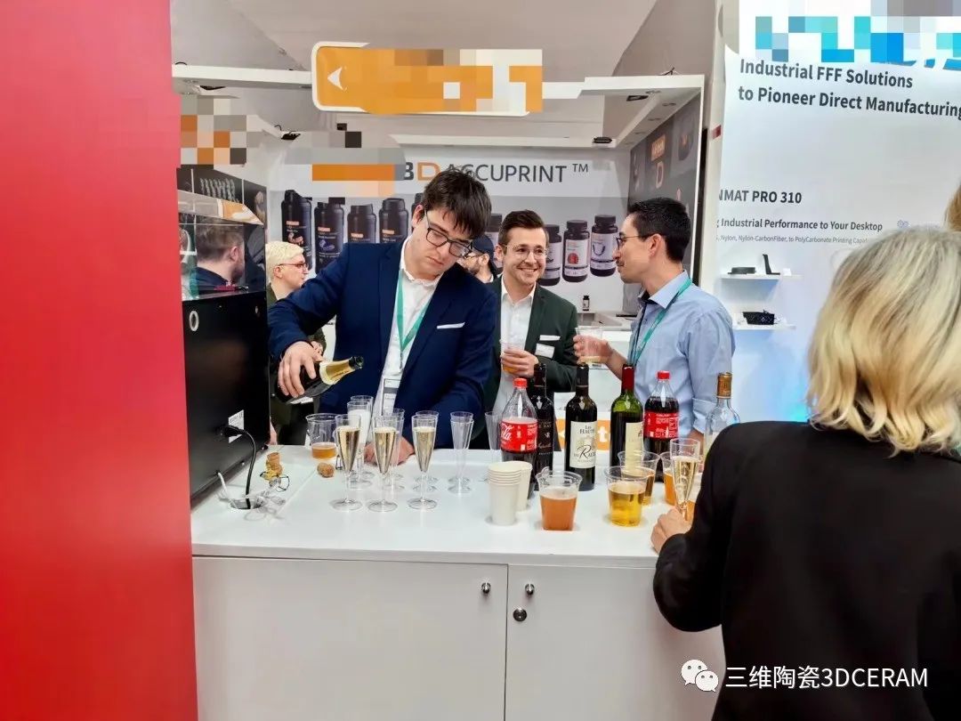 2023年11月8日,德國Formnext展第二天。展會(huì)結(jié)束后,3DCERAM在展臺(tái)上邀請(qǐng)來自世界各地的合作伙伴參加了一場(chǎng)隨興而友好的雞尾酒會(huì)。酒會(huì)上大家興致勃勃地互相交流對(duì)陶瓷3D打印的見解,以及未來3D打印行業(yè)的發(fā)展趨勢(shì),氣氛愉快積極。